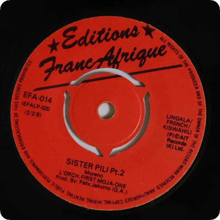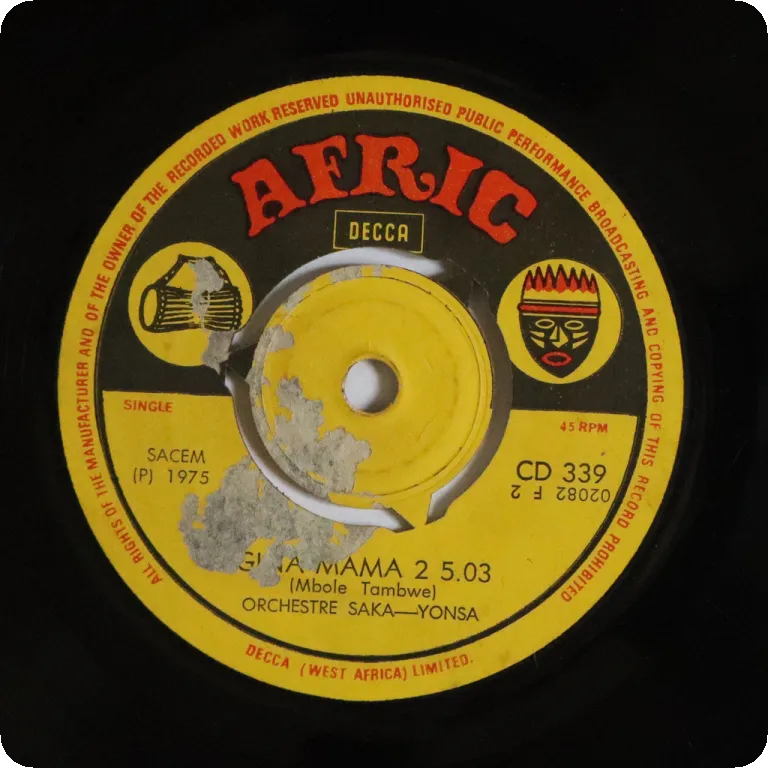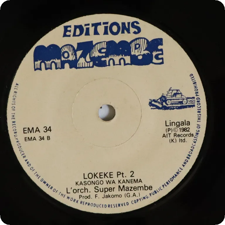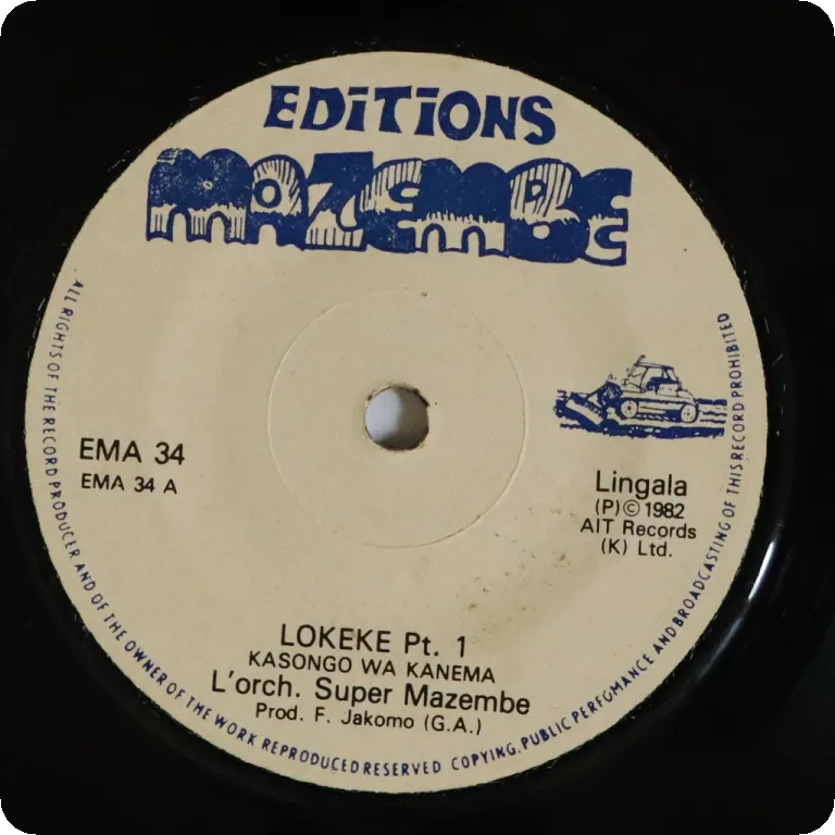 Tropical dancefloor soukous rarity possibly recorded in Kenya, sleeve has some aging & dirt, stains on front, writings on cover & labels, record has light to hardly noticeable noise from few marks, VG to VG++