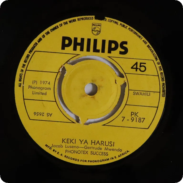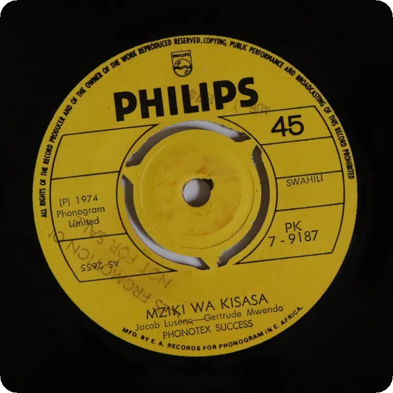 Ungoogleable Kenya benga double sider rarity by the sought after Kikuyu group. Dirt & crackling / wear on labels. Plays with light to hardly noticeable noise on A side (clips 1 & 2) but B side is noiy on first part (clip 3).