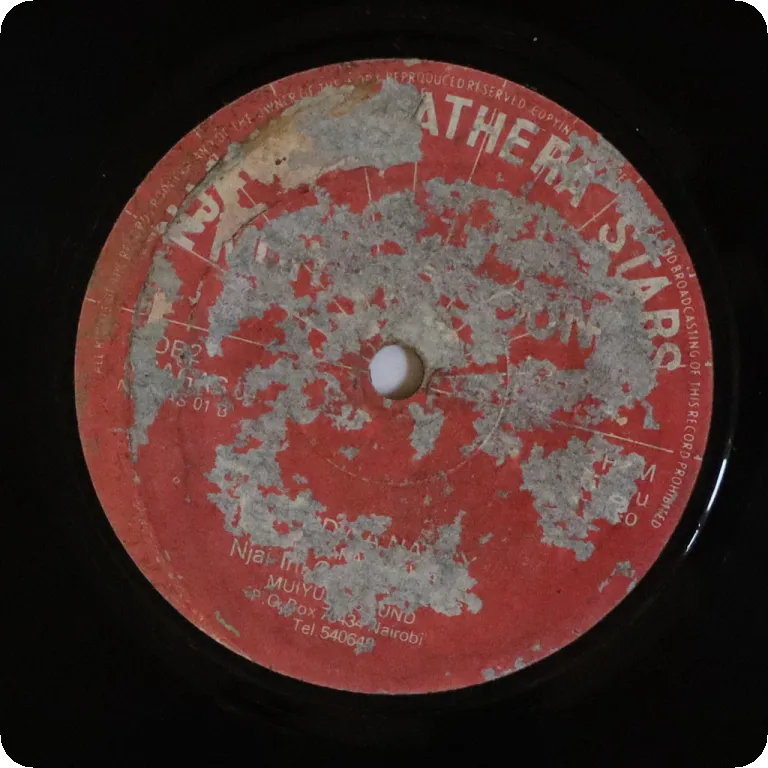 Ungoogleable Kenya benga double sider rarity sung in Kkuyu, check kick off on last part of B side. Strong wear, mold residues & peel off on labels. Record is VG-, reasonable to light noise, clicks