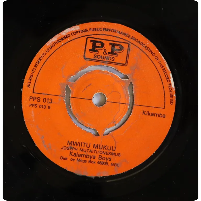 Kenyan benga rarity, including one with laid back intro on side A, both sung in kikamba language. Strong wear, fading of the colour and peel off on labels, record has light to hardly noise from marks