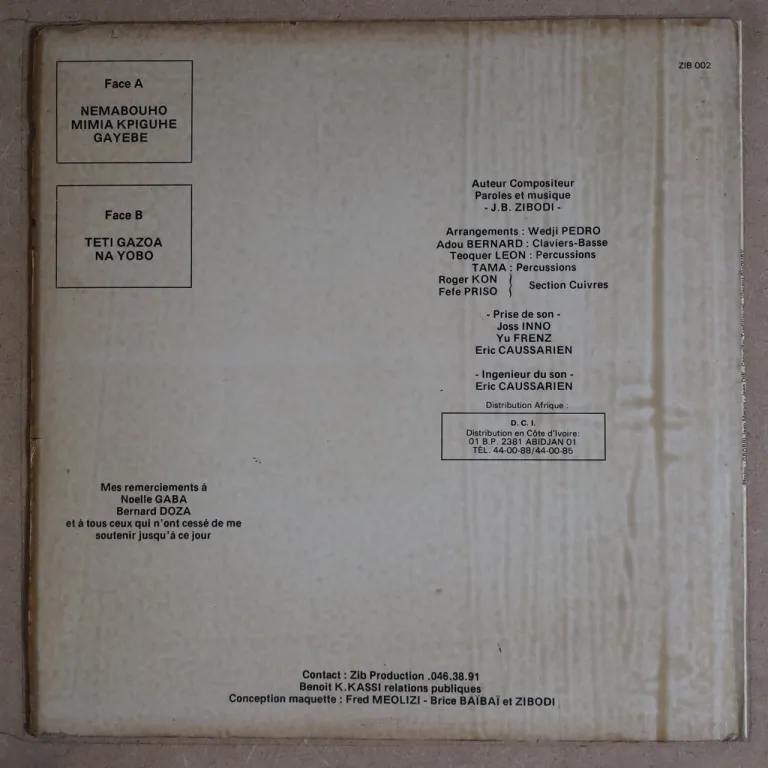 Ziglibithy, Soukous & afro pop LP rarity out of Ivory Coast. Sleeve has some wear & dirt, strong ringwear on back, record plays with reasonable to hardly noticeable noise from marks & pressing, worse