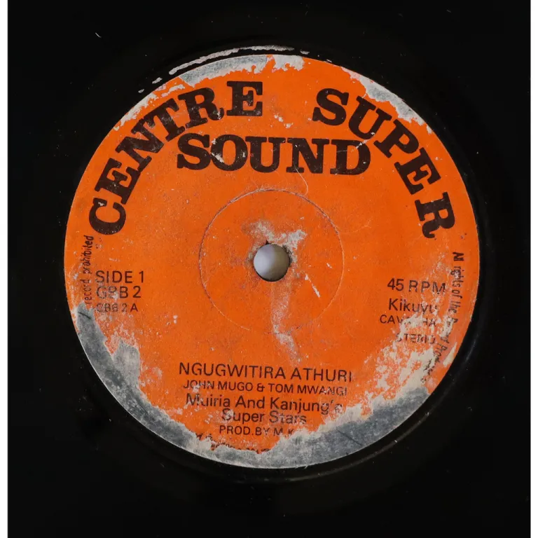 Ungoogleable kIkuyu benga double sider with a kick off at last part. Dirt wear & peel off on labels. Record is VG- reasonable to light noise from marks, several clicks on last part of A side from a