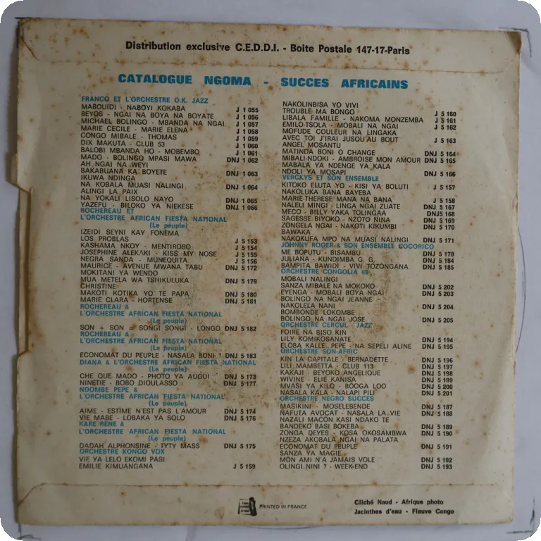Check the great raw instrumental parts 2 on this ultra rare rumba single only double sider by the Congo band, sleeve has aging & dirt, writings on cover & B label, small peel off on front, a bit noisy solid VG- to VG on first part of each side then plays so much better, up to VG++ as can be heard on clips.