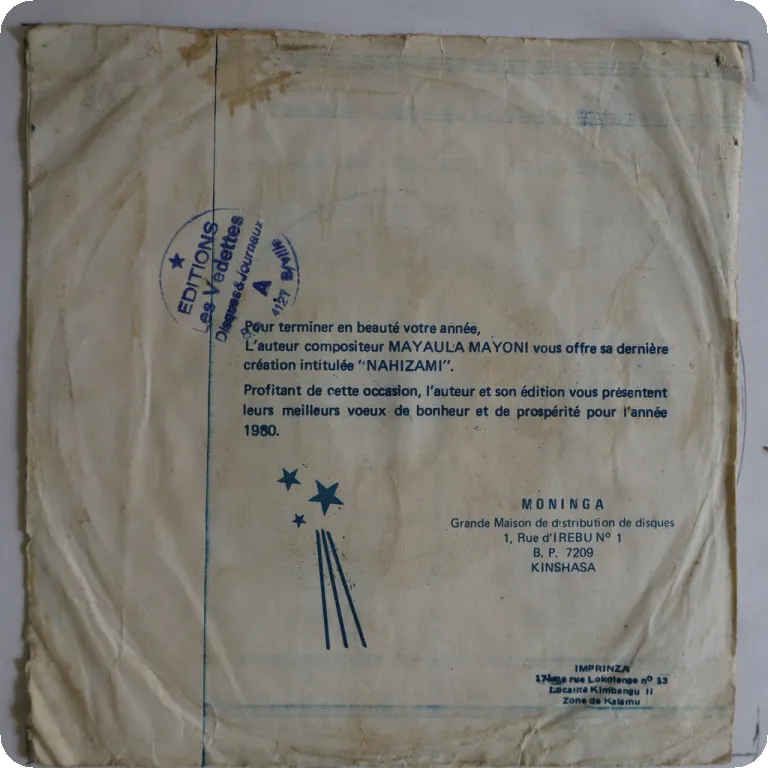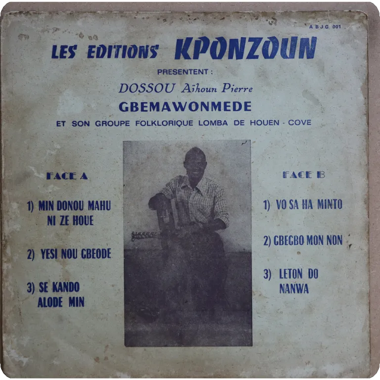 Dassa city region Benin folk music by one of the country's leading figures of the genre, scarce title, sleeve has aging & dirt, ringwear, shop stamp on back, peel off on bottom front, 2,5" split on spine, 1,5" split on top & bottom, record has marks & reasonable to light noise ranging from VG- to very solid VG- depending on parts.