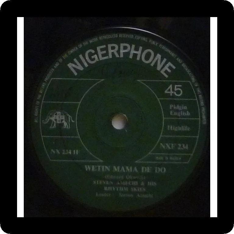 A hypnotic Native blues & a soukous tune on this single only very early release by the iconic Nigerian band. Record has marks & constant reasonable to light noise from marks, weak to very solid VG-