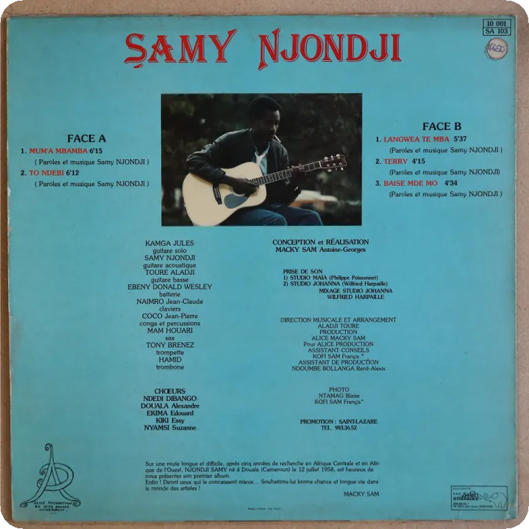 Check the discoish makossa winner on this release by the Cameroon artist. Light wear on cover, light creases, shop sticker on bottom front, record has marks & light to hardly noticeable noise