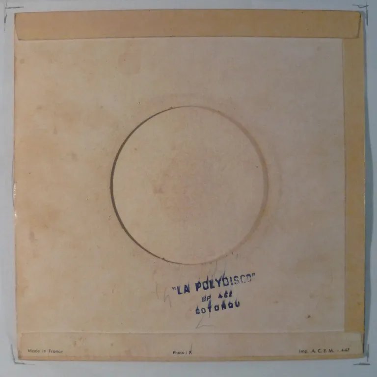 60's rumba single only rarity by one of the legendary Congolese orchestras, sleeve has strong wear, bites on spine & mouth, multiple small peel off, writings & rubber stamps on back & labels, writings