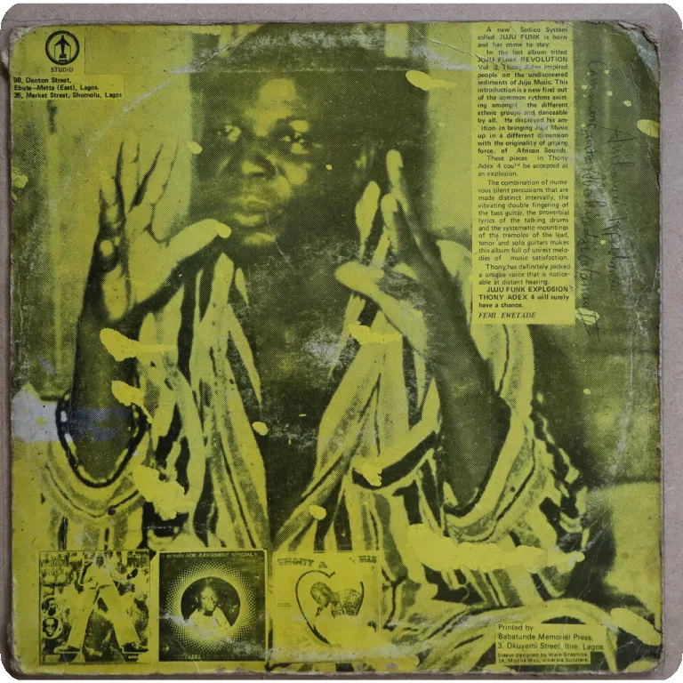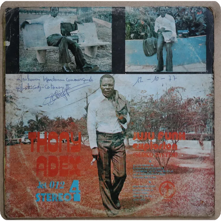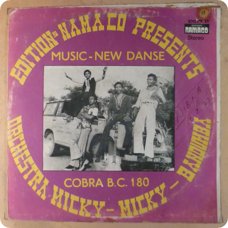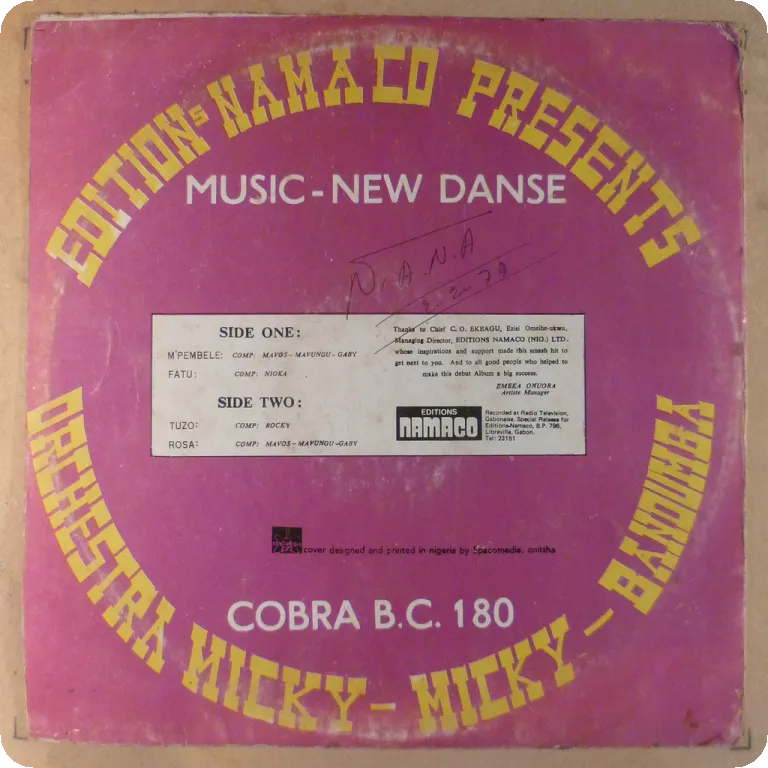 Top notch soukous winner on one of his much harder to find releases from the Abidjan period. Ringwear, aging, writings on cover & labels, record has very reasonable to hardly noticeable noise from marks depending on parts, VG- to VG