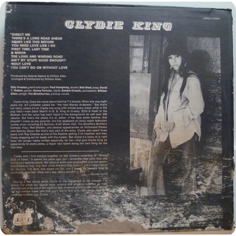 Hard soul, funky soul & bluesy soul masterpiece w/ backing by Billy Preston, Paul Humphrey, David T Walker, William Allen.... Split, bite, peel off & crackling along bottom, light warp, minor