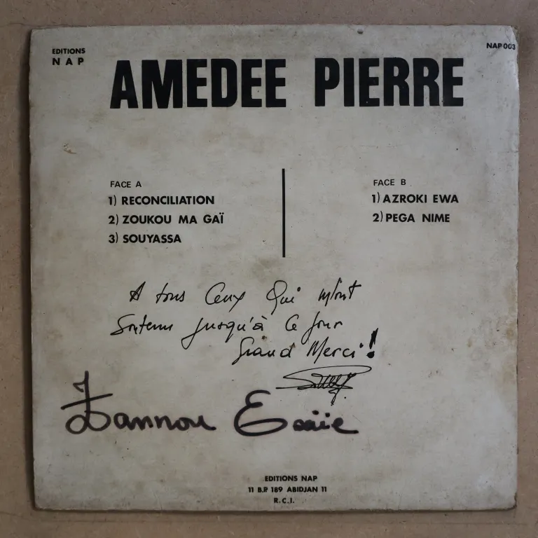 Sweet afrolatin track that reminds Amara Toure's best recordings + hypnotic afro pop & an afropop dancer on this scarce and indemand later release by the Ivory Coast veteran. Sleeve has aging, dirt, large writing on back & labels, record plays w/ very reasonable to hardly noticeable noise, solid VG- to VG/VG+ depending on parts.
