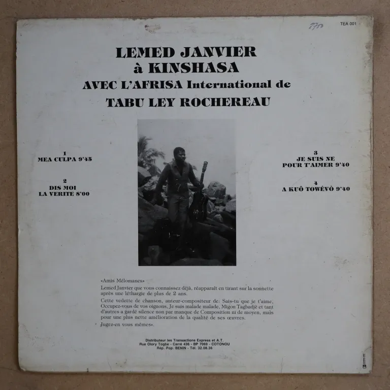 Dancefloor soukous winners recorded during by this Beninese singer with Tabu Ley's group a stay in Congo. Sleeve w/ light aging, dirt, writings on back & labels. Record plays VG- to VG w/ very reasonable to hardly audible noise despite numerous marks.