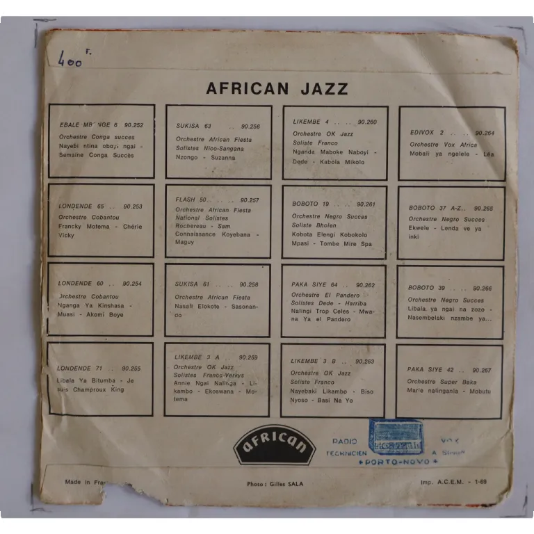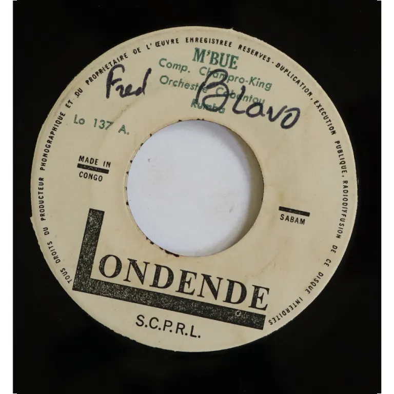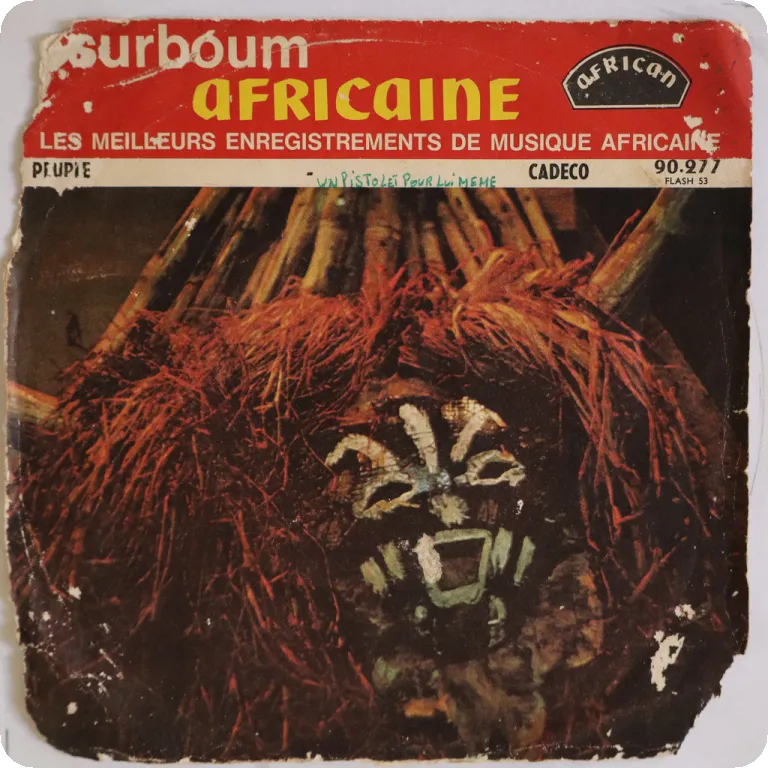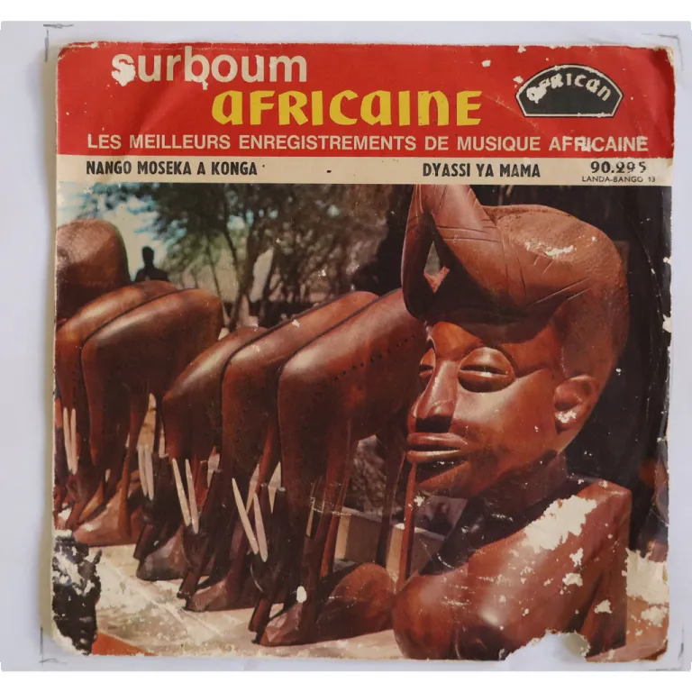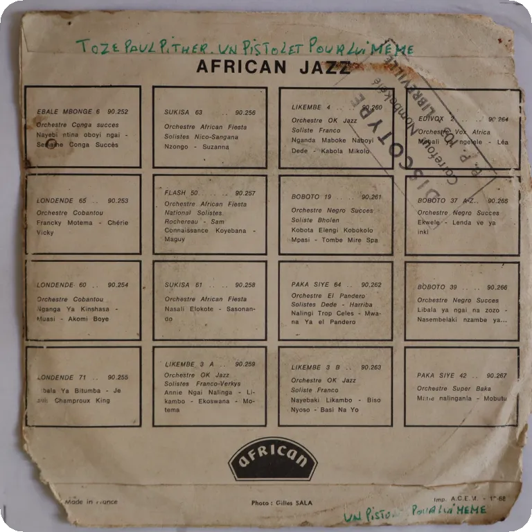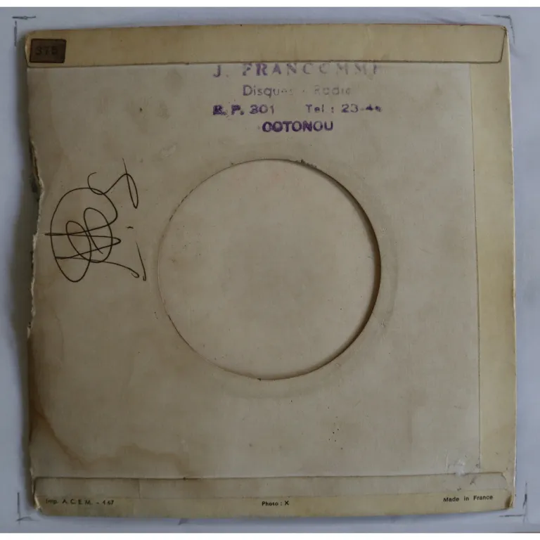Single only Congo rumba double sider rarity with a psych part 2 as recorded by this ephemerous late 60's band. Sleeve has some aging & dirt, bite along mouth, rubber stamp, small price sticker & writings on back, beige water damage wear on bottom mouth corner. Stain on A side label, writings on B side label. Record has constant strong to reasonable surface noise from marks, noisier on side A (clips 1 & 2) but B plays better.