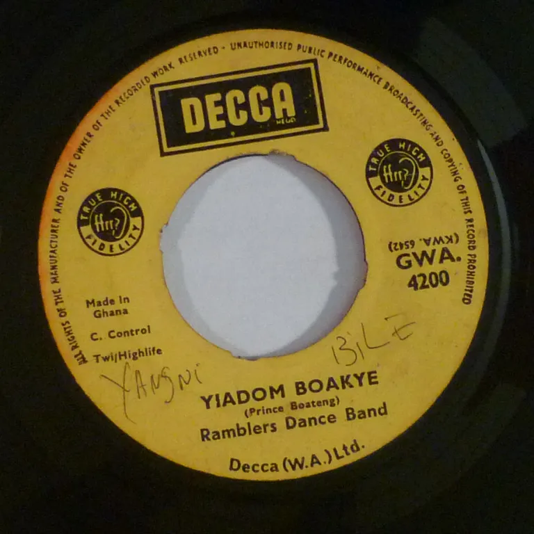 Single only highlife rarity by one of Ghana's most succesful bands. Peel off on A side, writing on B side, constant reasonable noise from marks, crackier on intros / first parts.