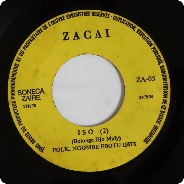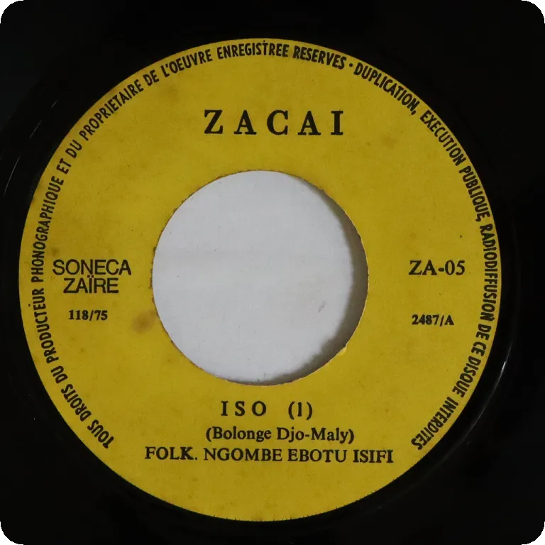 Raw uptempo Congo soukous rarity. Some dirt on labels, A side plays quite nicely VG/VG+ with minor occasional noise but B side (clip 2) has constant noise from surface marks VG-