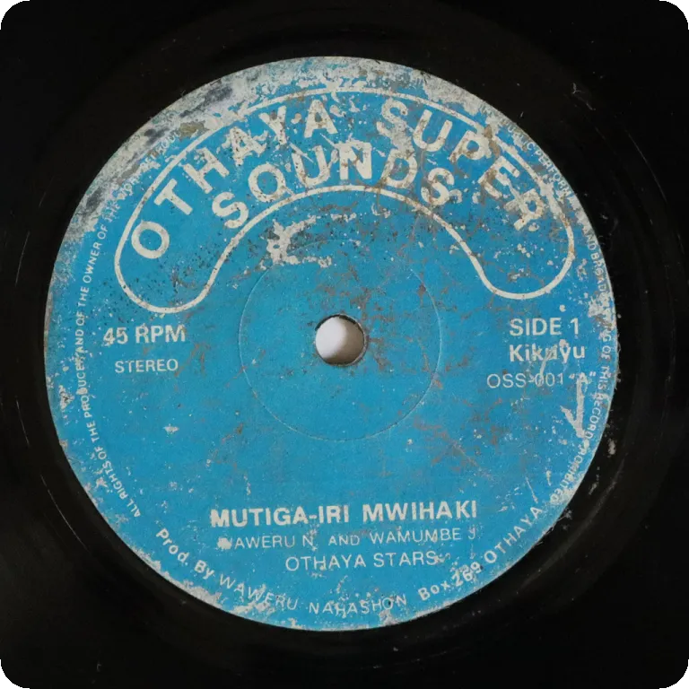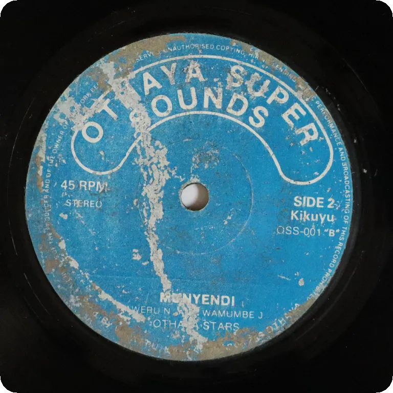 Kenyan benga rarity, including one with laid back intro on side A, both sung in kikamba language. Strong wear, fading of the colour and peel off on labels, record has light to hardly noise from marks