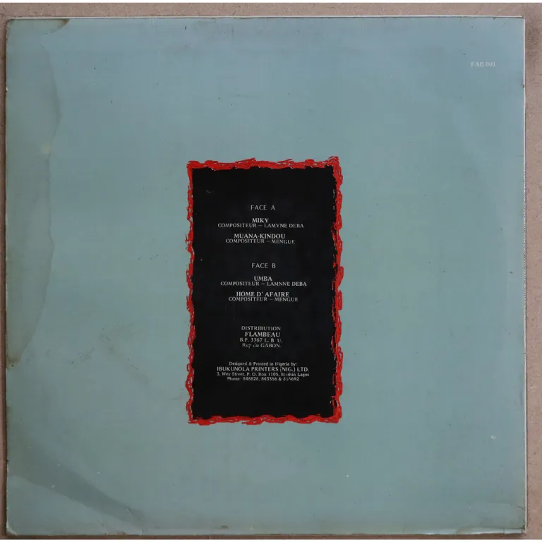 Every soukous tune is a tropical dancefloor winner on this ultra scarce soukous LP recorded by Nigeria based Congolese musicians. Sleeve w/ strong dirt, light brown water damage wear along bottom