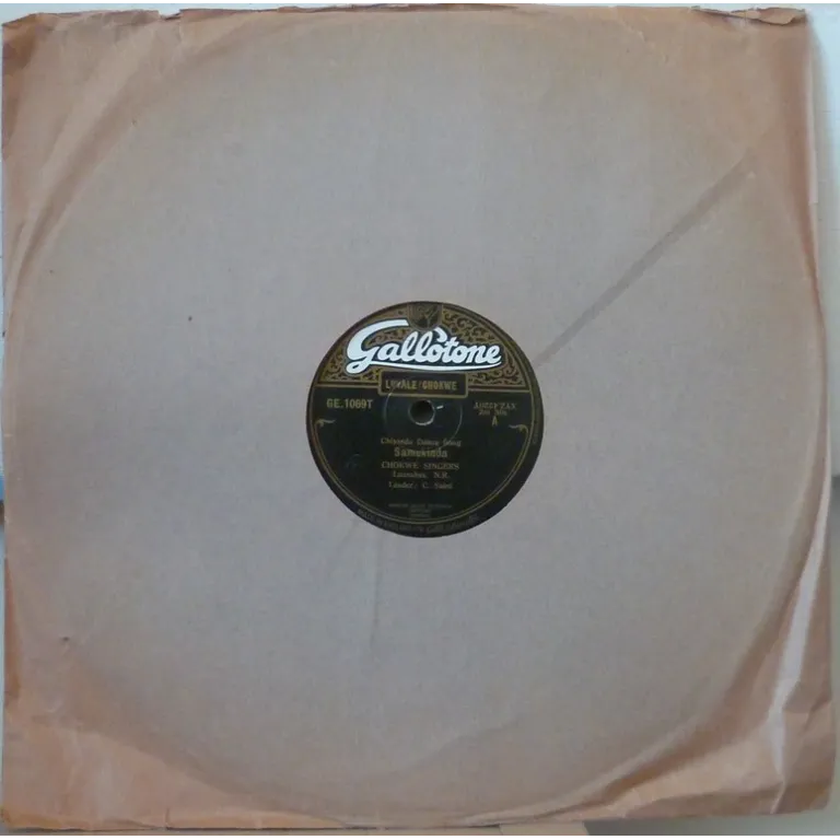 Zimbabwean folk music w/ choir & male soloist singer. Strong pressing noise, and chip on edge to A side which doesn't reach the recorded groove though.
