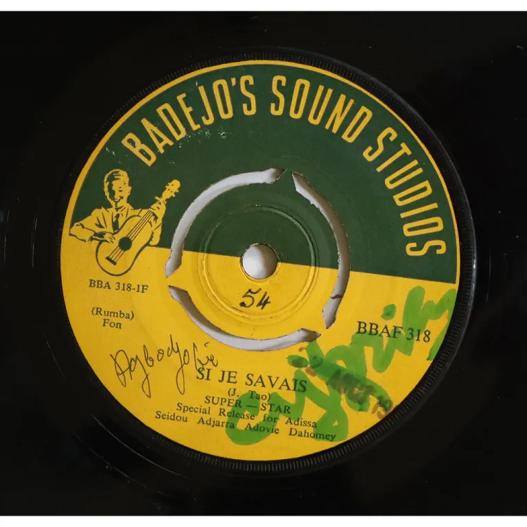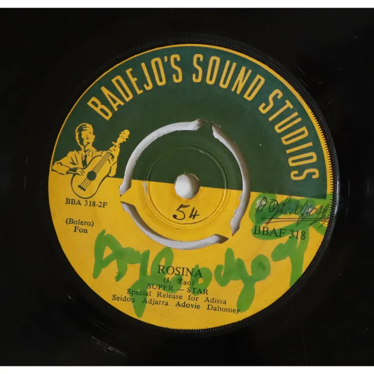 Check the deep bolero & the nice rumba on this super scarce release by the Ouidah, Benin band. Large writings on labels, record has constant very reasonable to extremely light noise, solid VG- to VG, multiple marks but still plays quite nicely on the rumba tune, the bolero is noisier.