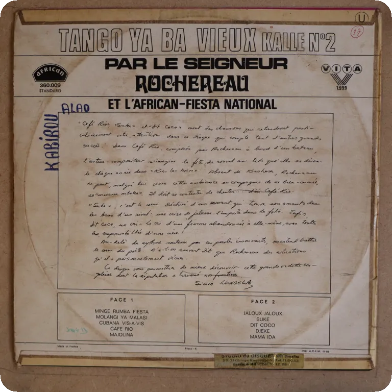 Compilation of 60's Vita label rumba recordings by the legendary Congolese voice. Aging & dirt on cover, ringwear, writings & dirt on back, air bubble underneath upper plastic & small peeling of the