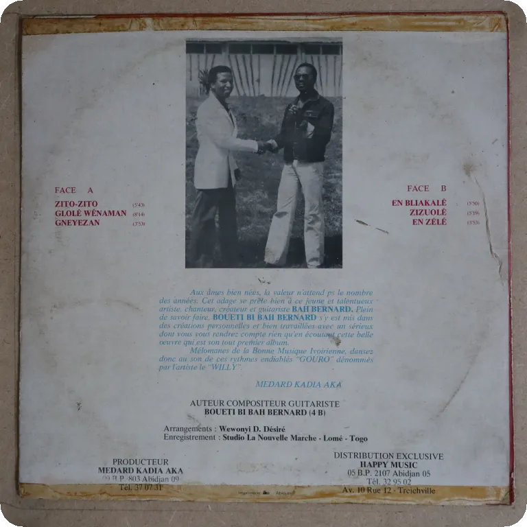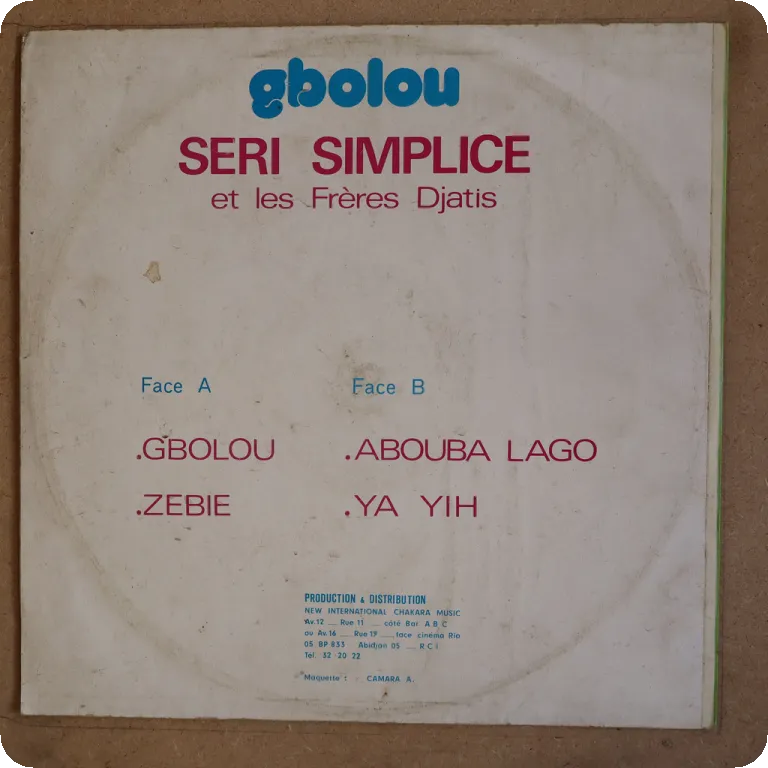 A tropical dancefloor soukous & several afro pop tunes from Cote d'Ivoire, and surely on the gentleman's rarest albums. Sleeve has aging/dirt, small peel off on top front, writings on back, record has