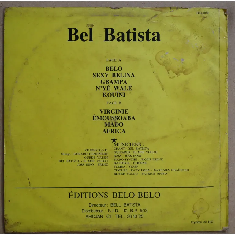 Dub roots reggae, hypnotic afro & funky cadence tracks on this scarce release by the Ivory Coast artist, Sleeve has aging & dirt, warp & creases, beige stains on back, record has light to hardly noticeable noise from marks,