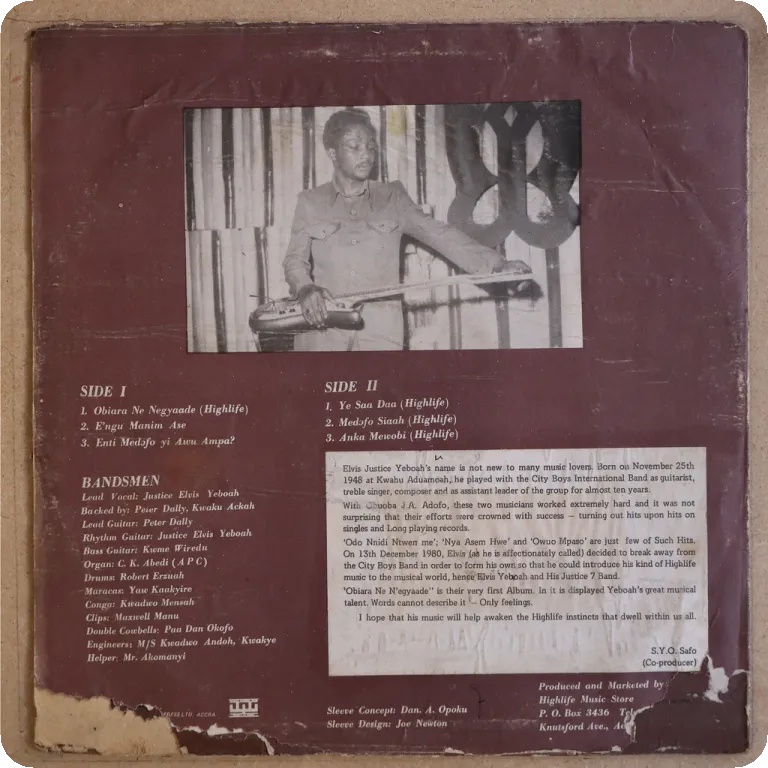 Every tune is a horn highlife winner on this off the radar old fashioned Nigerian rarity that sounds like it's been recorded 10 years earlier than its actual release date. Sleeve has aging, strong dirt, 6" split on bottom, 3-4" split on top, writings on cover & A side label. Record has constant reasonable noise from numerous marks.