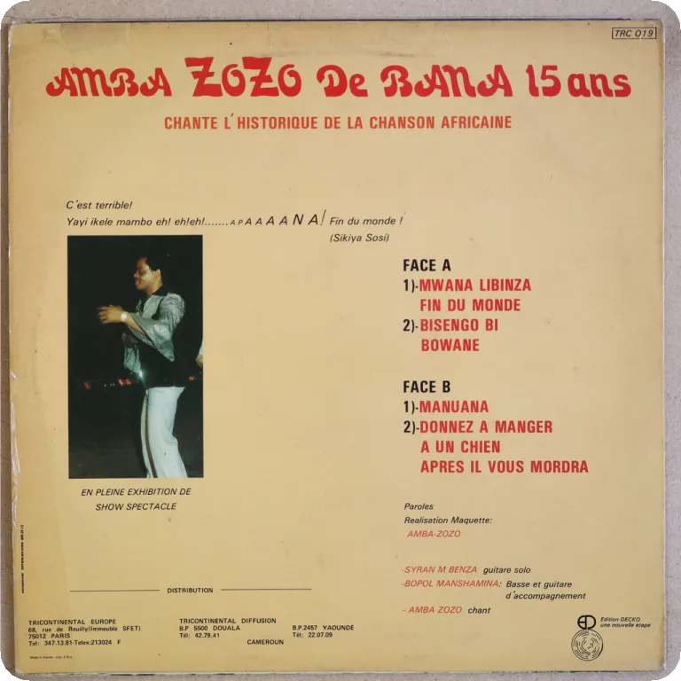 Mid & down tempo soukous on top feat. Syran Mbenza & Bopol Mansiamina. Light aging & dirt. Record in perfect shape.