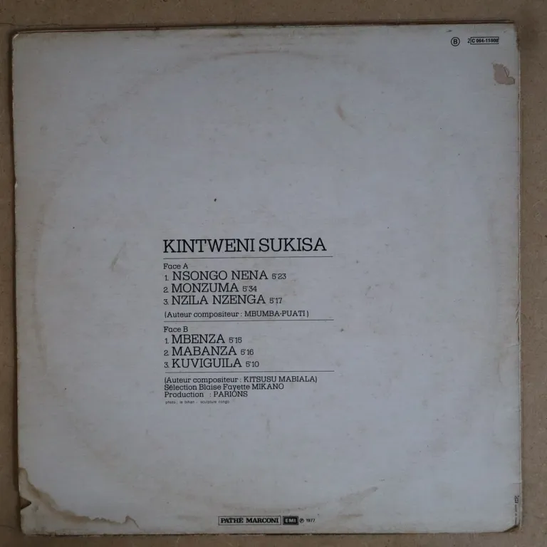 Raw uptempo Congolese psych soukous winners on this much harder to find & underrated release on the Pathe Congo series. Light brown water damage on bottom mouth corner, small peel off on back, writings on labels, record plays greatly with few minor thin marks.