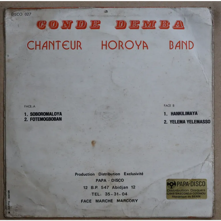 His rarest of the 2 solo lp's recorded for the Papa disco label, commercially released with an orange cover, and a killer afro psych Manding masterpiece by former Horoya band singer. Sleeve has aging & dirt, creases, mini peel off on front, distributor sticker on back, white label manufacturer test press, Record has some marks and quite reasonable tohardly noticeable noise, issues are mainly on side intros (clips 1 & 3)