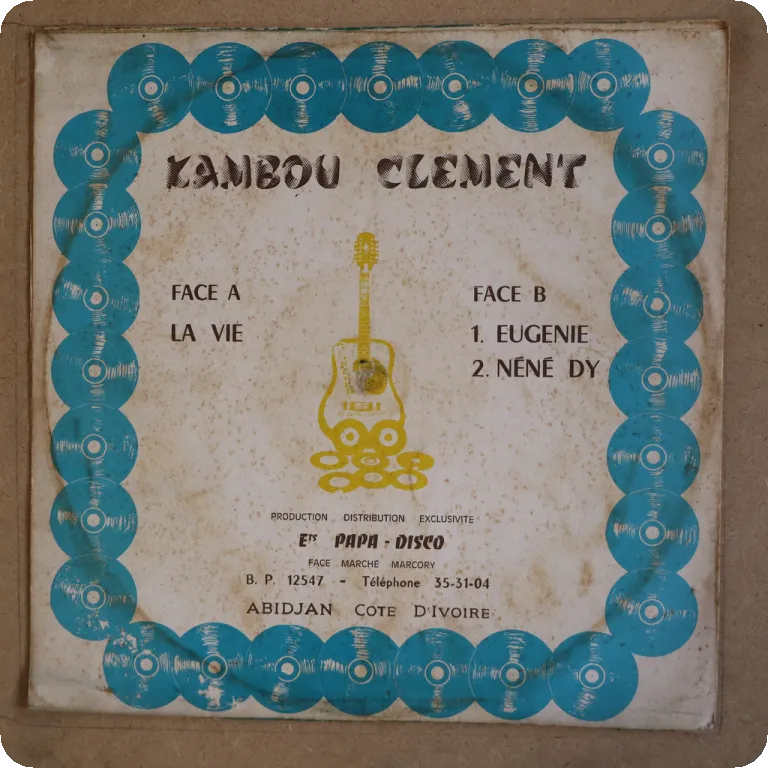Tropical dancefloor soukous masterpiece recorded in Abidjan. Light wear on cover, narrow water damage wear along spine on back, shops ticker on front, light creases, some dirt on B side label, record in top shape with inaudible opaque pressing wear on edges, cleanest copy I've ever offered.