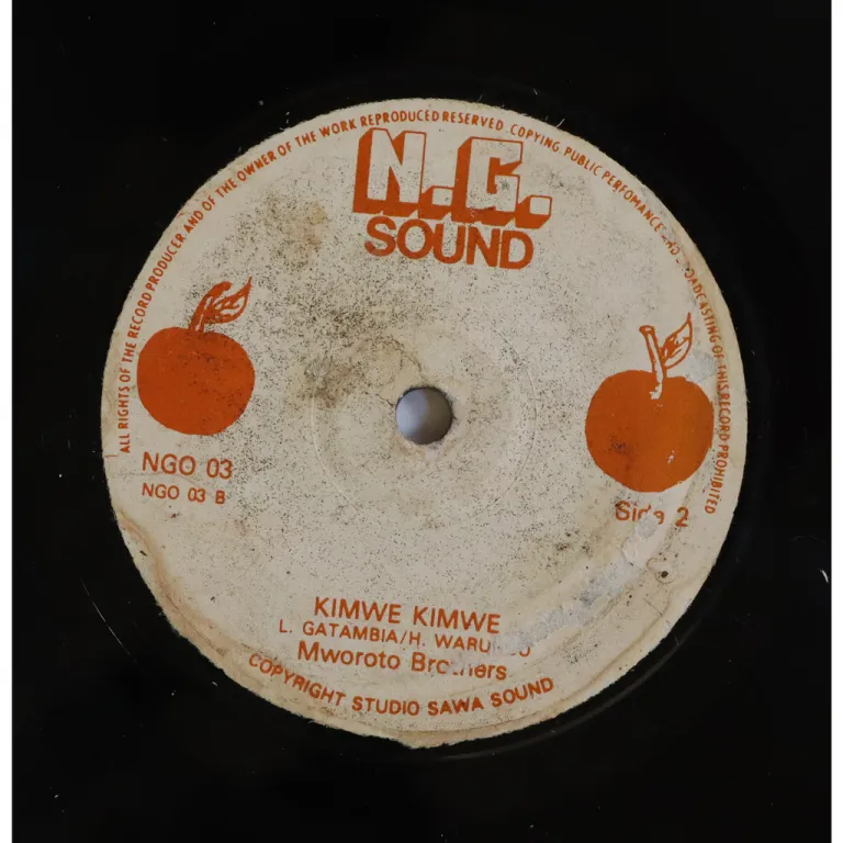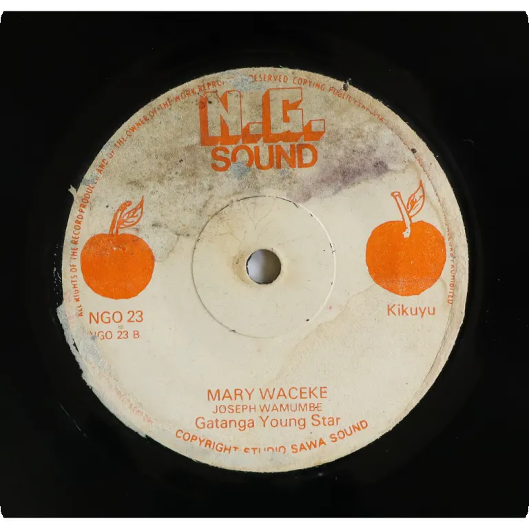 Kikuyu benga double sider, B side has a kick off w/ guitar solo on the last minute. Water damage wear & peel off on labels. Record plays VG to VG++, light to hardly noticeable noise.