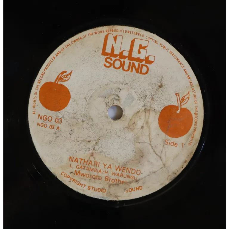 Kikuyu benga double sider with light kick off on part 2 out of Kenya, wear & peel off on labels, record has very light occasional to hardly noticeable noise.