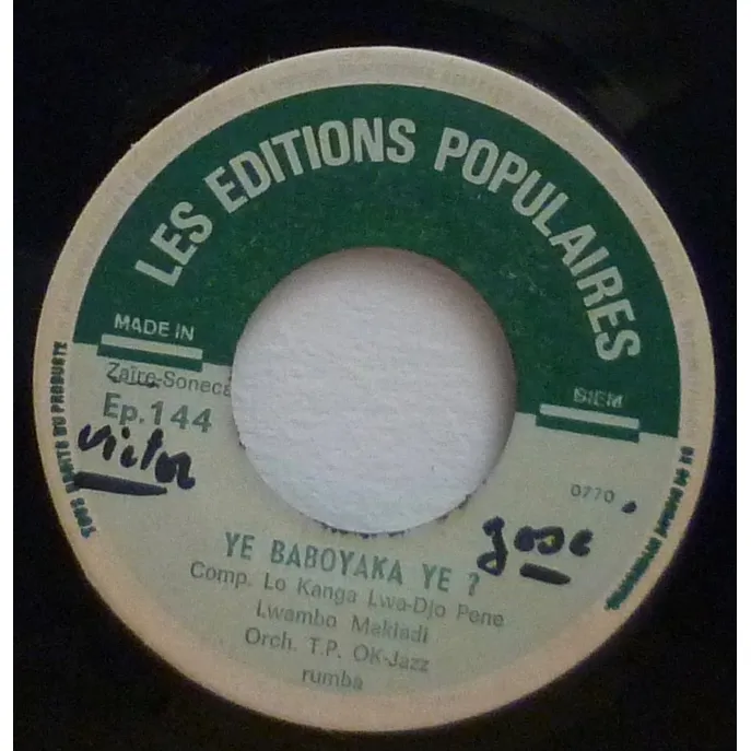 A rumba & a rumba with asoukous kick off as recorded by the legendary voice with the equally legendary orchestra. Writings on A side label, record has marks & quite reasonable to very light noise from marks, plays better through the sides while it's crackier on edges.