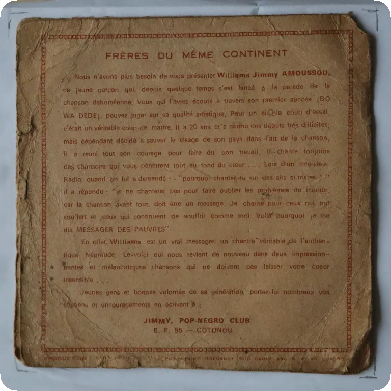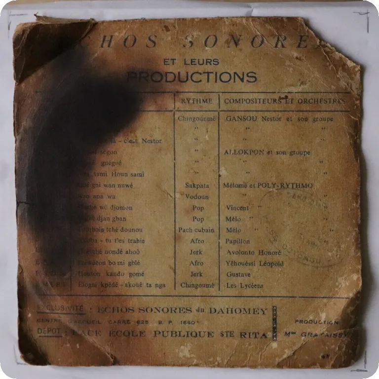 Afrobeat / afrofunk mega rare double sider w/ scarce pic sleeve as recorded by the Kings of Benin for the much smaller ESD label. Apparently never auctionned on ebay nor sold on discogs. Mini bites on bottom mouth, writings on back & labels, small hole on top front & on back cover, peel off, record plays w/ strong to light noise from numerous marks, G to VG-.