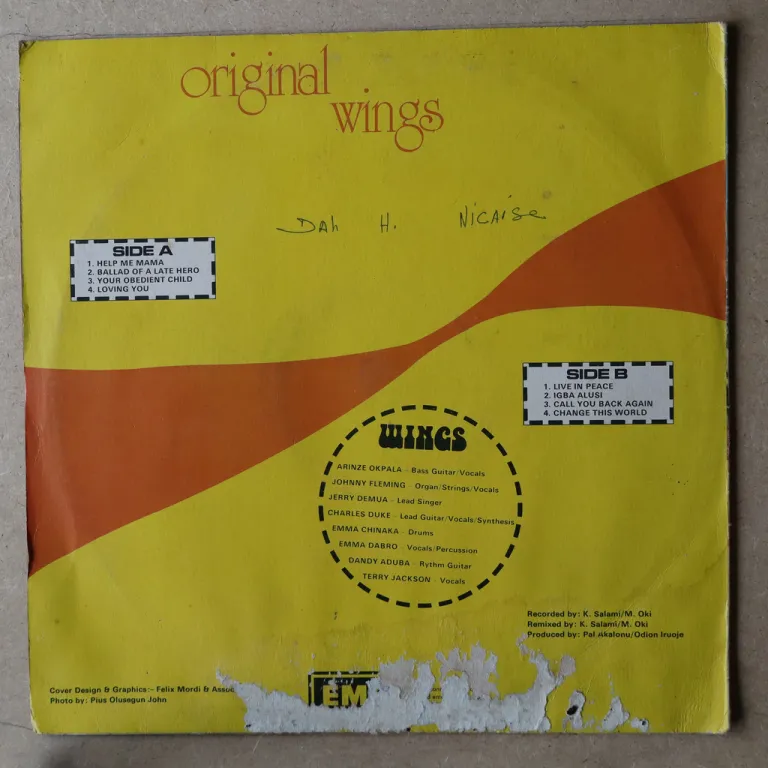 Killer hypnotic afro funk tune "Igba alusi", also check the afro funk rock winners "loving you" & "live in peace", sleeve has aging & dirt, writings on cover & labels, peel off, paper stuck & beige water damage along bottom, record has extremely light to no noise, solid VG to VG+, marks but sounds really nice