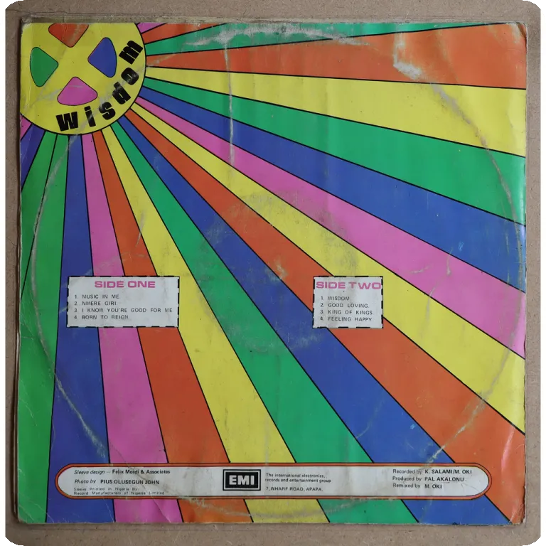 Afro psych funk & afrobeat from Nigeria, features "Feeling Happy" loaded with electric organ & blowin' horns, also check "born to reign" & title tune. Sleeve has age wear, dirt, strong ringwear