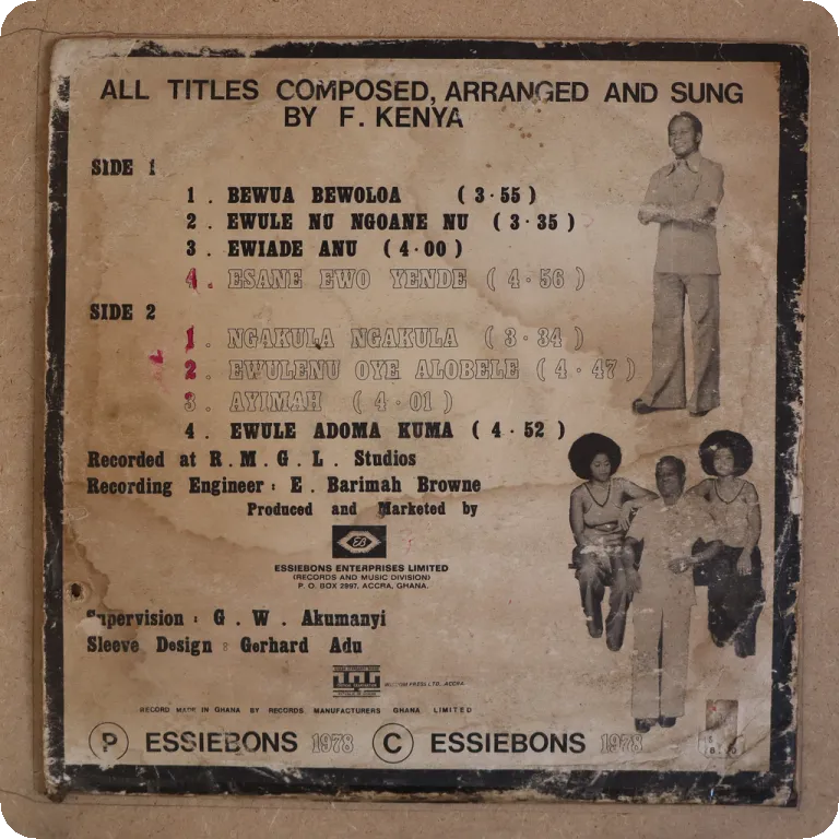 Cover only, no vinyl. Sleeve has wear & dirt, light brown water damage & peel off, 8" split & peel off on spine, black stain & ringwear on back.