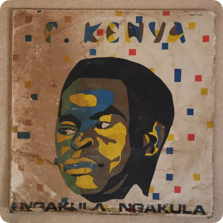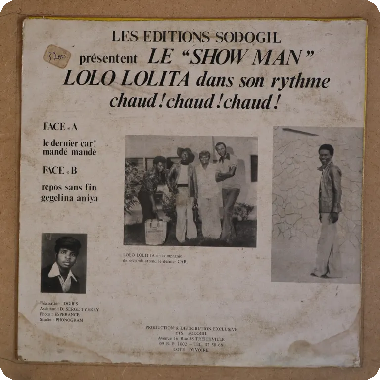 Cover only, no vinyl. Sleeve has dirt & aging, small creases along spine, small bumps & tears on mouth, ringwear on back, brown tape along seams.
