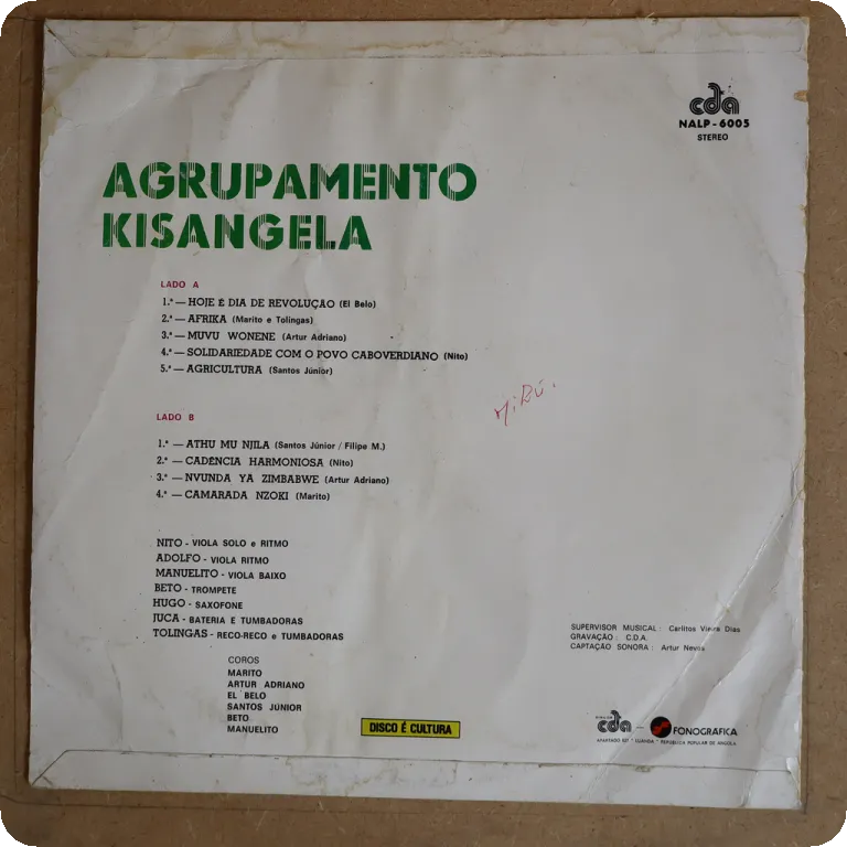 Record missing, cover only. Sleeve w/ aging & dirt, small peel off, 8" split on spine, writings on back, ringwear, creases, light brown water damage stain on back