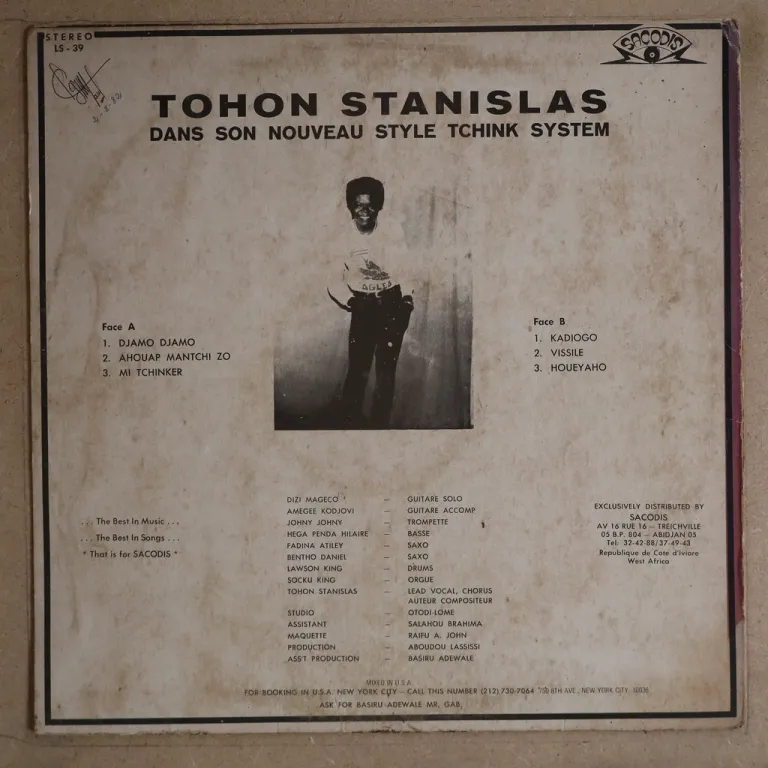 W/ the funky dancefloor afropop / afrobeat tune "Mi tchinker", a consistent hypnotic afro synth pop tchinkoume LP & a great roots reggae, wear on cover, dirt, small writings on back, light to hardly any noise from marks, very occasional light clicks, weak VG to VG+ depending on parts.