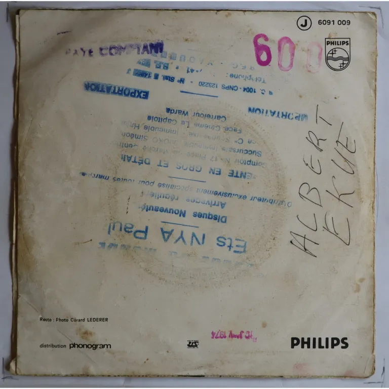 Folksy afro soul & afro soul gospel single only rarity by the Cameroon legend. Sleeve has aging & dirt, large shop stamp & ringwear on back, writings on cover & labels, split on all spine & bottom, 5" split on top, tears on mouth, plays with light to hardly noticeable noise from marks.