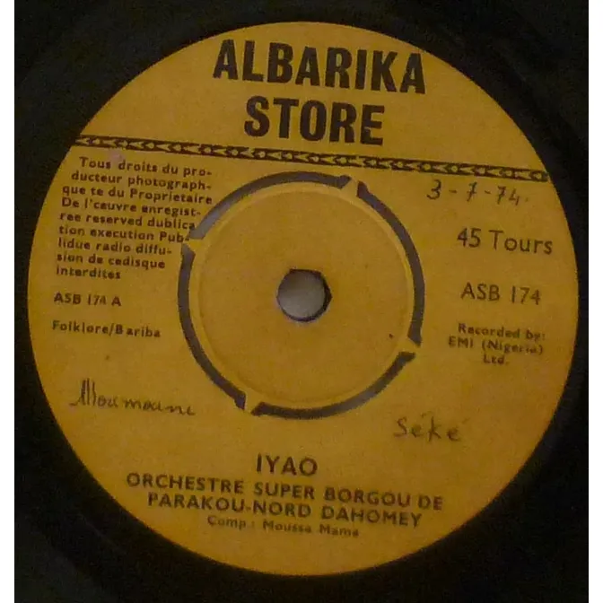ORCHESTRE SUPER BORGOU DE PARAKOU - Iyao / Vive l'amitie Daho Guinee