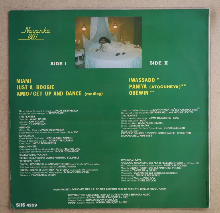 boogie disco funk American style track on this LP released by a female Ivory Coast singer. Minor wear on cover, writings on labels, plays w/ very occasionally very light noticeable noise.