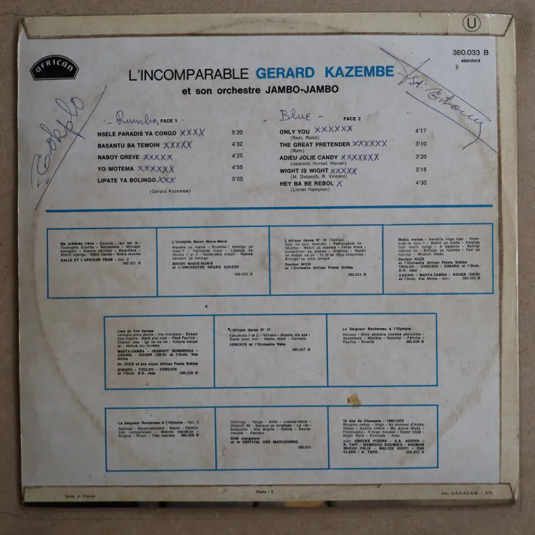 Check the super funky soukous tune & the psych parts 2 on several rumbas on this off the radar Congolese rarity which also includes several soul ballads with crooner singer. Light wear on cover, writings & ringwear on back & writings on labels, record plays w/ light to hardly noticeable noise from marks