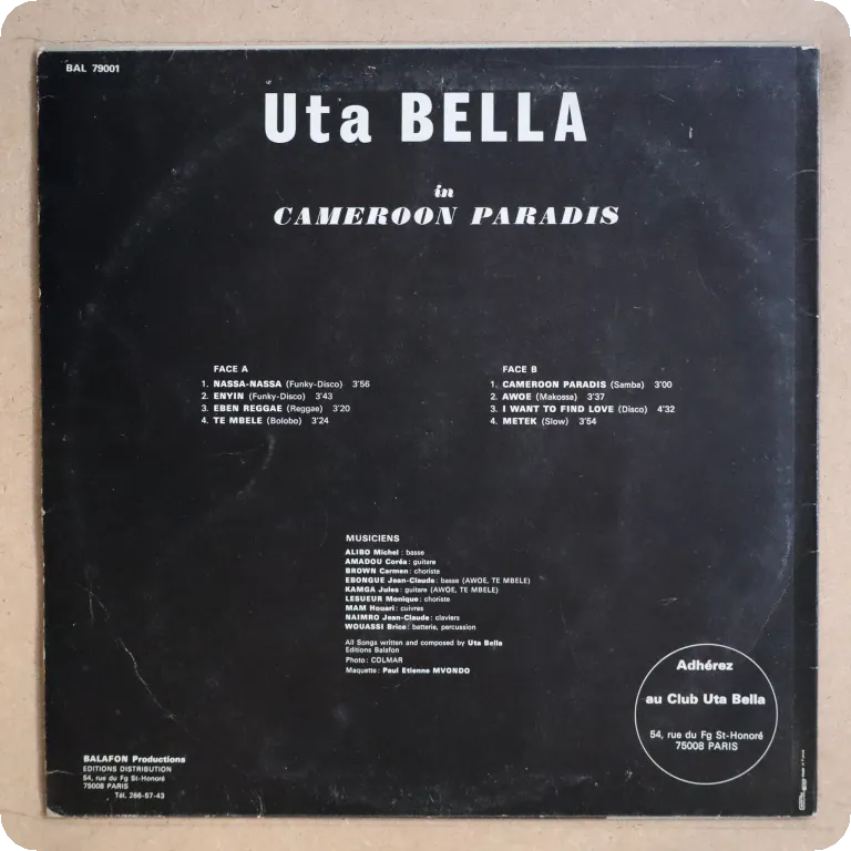 Boogie disco 3 trackers recorded in Paris by the Cameroon, Central African singer. Sleeve has minor wear, record has very light to hardly any noise with very light marks.