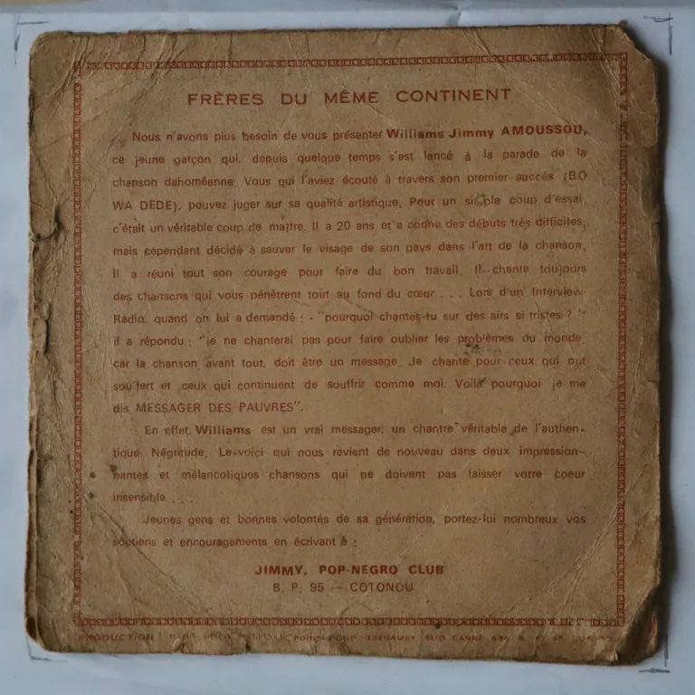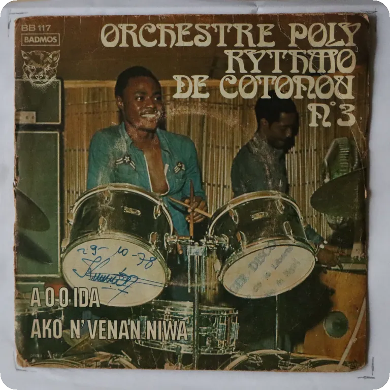 Laid back afrobeat track w/ kick asss sax & organ solos by the Kings of Benin on this much scarcer label, super scarce pic sleeve version ! sleeve has aging & dirt, mini tears on mouth, small bite on top spine, split on all spine, 1,5" split on top, writings & text discolouration on labels, plays w/ reasonable to extremely light noise from marks, the standout tune plays the best from solid VG- to VG, while B side's rumba is closer to weak VG- .