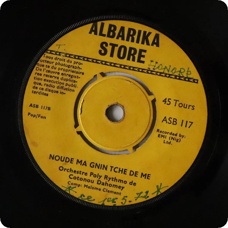 Afrobeat organ winner which also features a sax solo by the Kings of Benin, ballad on side B, minor dirt & some writings on labels, record has constant reasonable noise from marks.