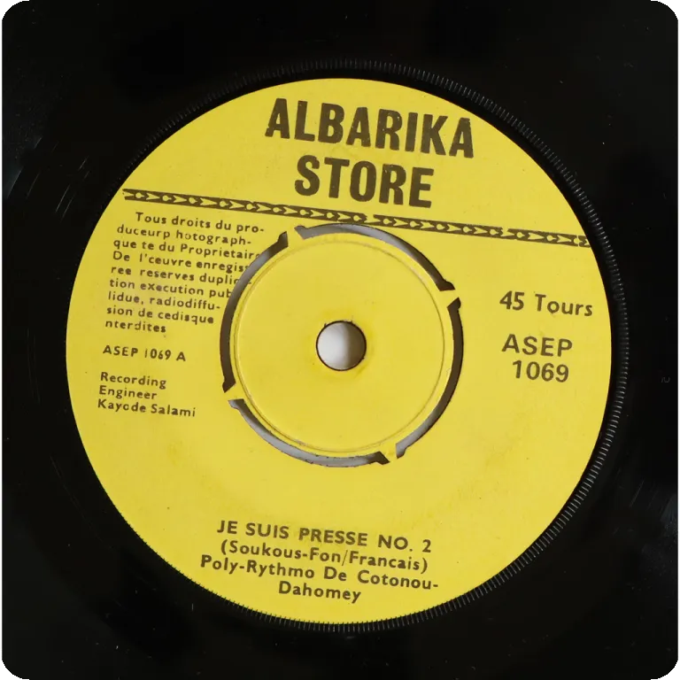 Hypnotic organ afrofunk winner & a soukous on this scarce single by the Benin legends, record has reasonable constant noise from surface marks