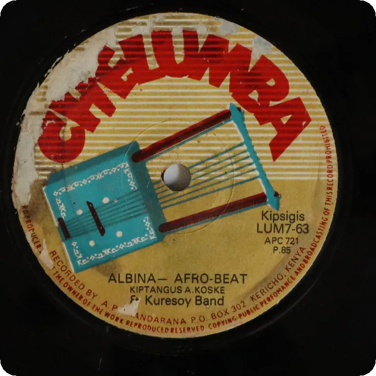Ungoogleable Kenya folk & benga sung in kipsigis language. Strong dirt & some peel off on labels. Record is VG- to VG, reasonable to light noise from marks, bite on edge didn't reach the grooves, a