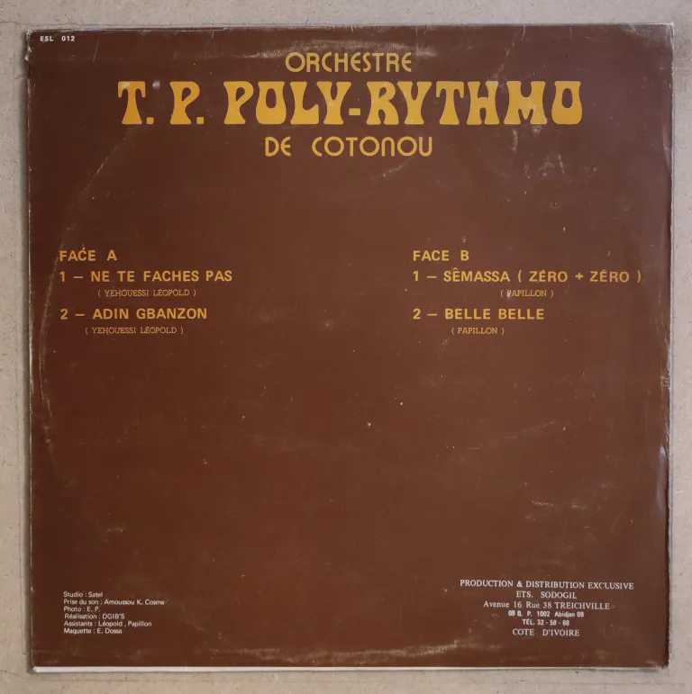 Ultra rare translucent red vinyl press. Certainly one of the ultimate poly rythmo lp's if you're not only after afro funk, "ne te faches pas" was compiled by Miles Cleret in his PRythmo comp', also features the afro latin killer "semassa", the laid back sato style "Adin gbanzon" & a nice afro pop at "belle belle". Sleeve has minor wear, vinyl plays sweetly, one of the cleanest copies I ever offered !